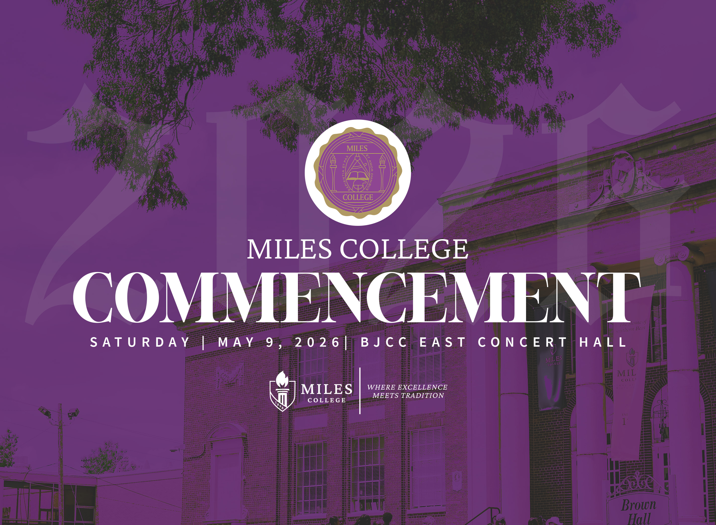 The Miles College Commencement 2026 will be held on Saturday, May 9, 2026, at 11:00 a.m. in the BJCC East Concert Hall located at 2100 Richard Arrington Boulevard North, Birmingham, AL 35209.